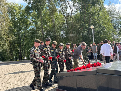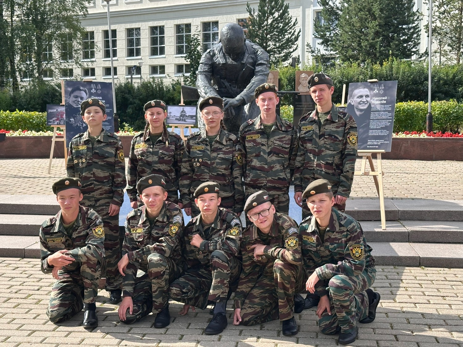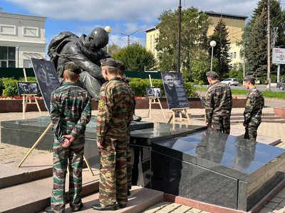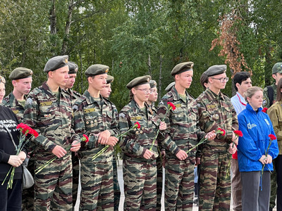 Наши активисты «Движения Первых», курсанты ВПК "Юнкер", приняли участие в церемонии возложения цветов, в память о Давиде и Николае, у памятника «Скорбящий воин».